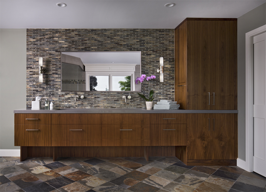Most people prefer having their own sink, and this goes doubly true if you and your partner have differing ideas about what constitutes “clean”. Investing in two sinks for your master bath can save you a lot of headaches. We also recommend considering under mounted sinks that have no raised rim, which makes sink cleanup much easier.